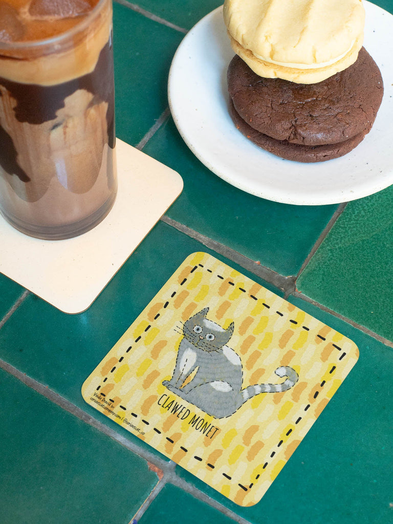 Throughout history, Artists & Cats have paired as well as wine does with cheese Almost all the Artists you can name had a feline friend. If you're one of them, or simply an appreciator of wine, make sure you keep these coasters beneath those glasses. Keep it artsy people!